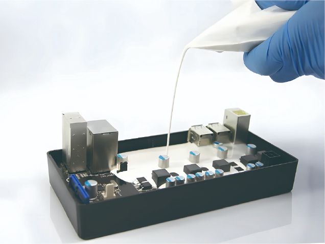 导热灌封胶是以有机硅树脂为基体,填充导热填料,经专门工艺加工而成的液态有机硅导热复合材料。具有优良的导热性、电绝缘性、耐候性、耐温性、防潮性、抗老化性。